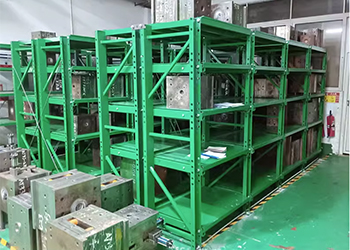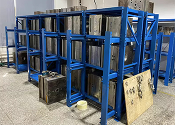 This shelf is suitable for storing various heavy objects such as molds. It has a drawer style structure and a height of 50-100mm, which can be adjusted up and down. The top can be equipped with a hand pulled/electric hoist mobile cart for easy access to goods. The bottom of the drawer is equipped with a roller track, which allows easy pulling of 300-2000kg/layer even after heavy load.