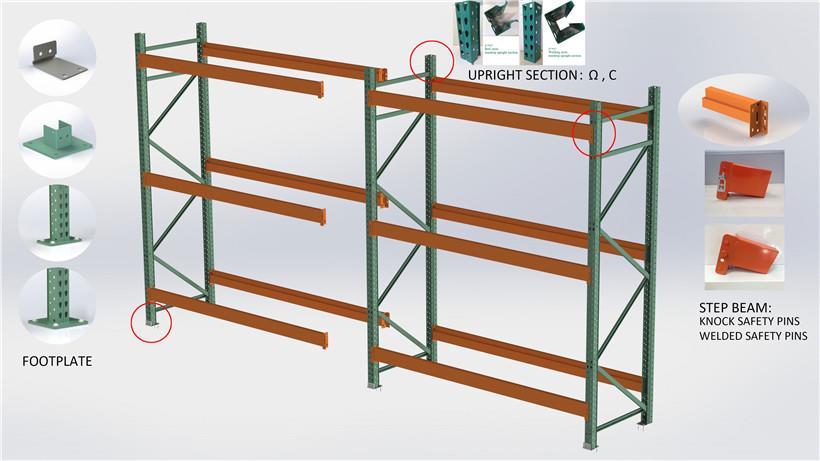 Pallet racking mainly consist of Upright Frame, Beam, the optional acessaries includes: upright protector, frame barrier, pallet support bar, pallet stop beam, loading panel etc.